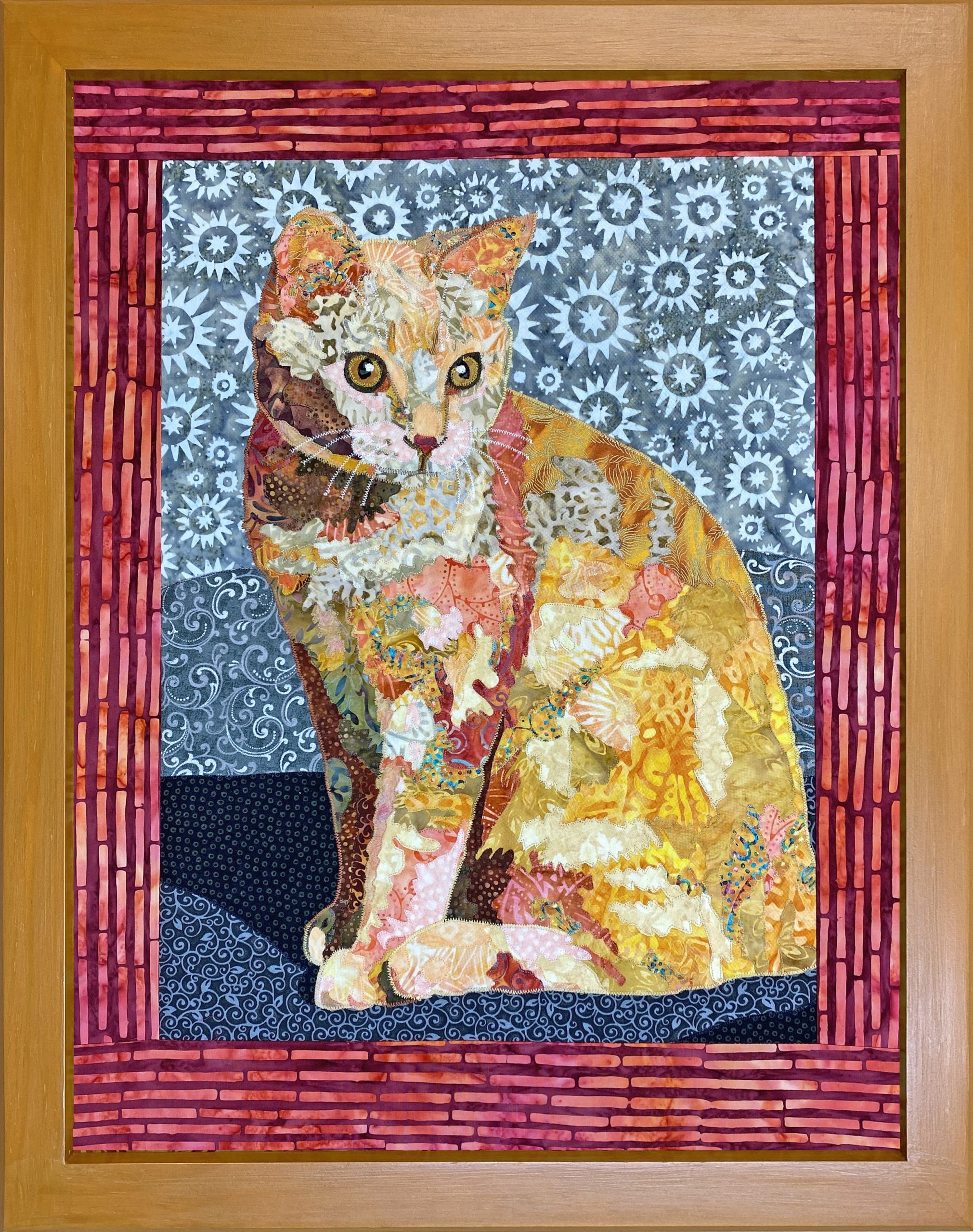 I would like to imagine a cat having fur that actually matches the patterned fabric in the picture.